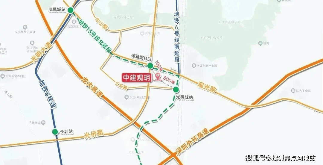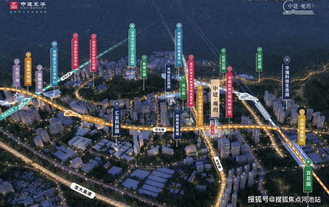 区位:中建观玥位于光侨路与观光路交汇处,临近地铁 13 号线德雅路站,地处光明区核心板块 —— 区政府所在地,区域开发成熟,地铁与名校配套已完善,城市界面崭新。